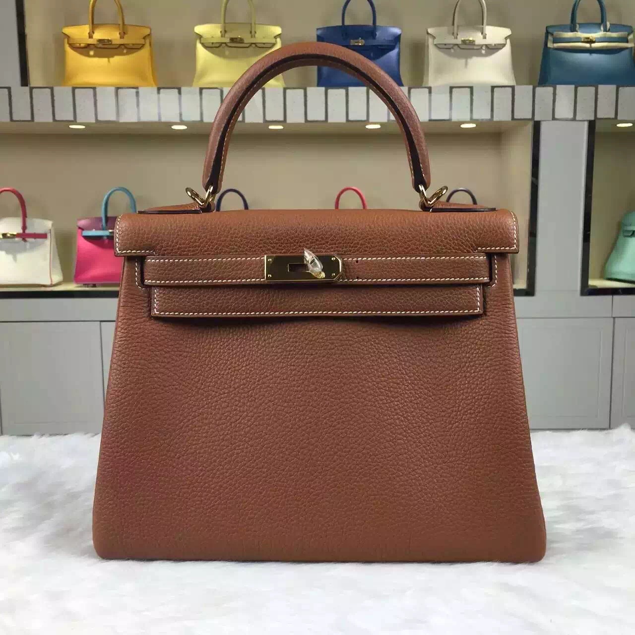 Brand: Hermes; Style: Kelly Bag28CM ; Material: Togo Calfskin Leather;Color: CK37 Gold; Hardware: gold/silver; Accessories: Padlock and keys, dust bag.Functions: tote bag.