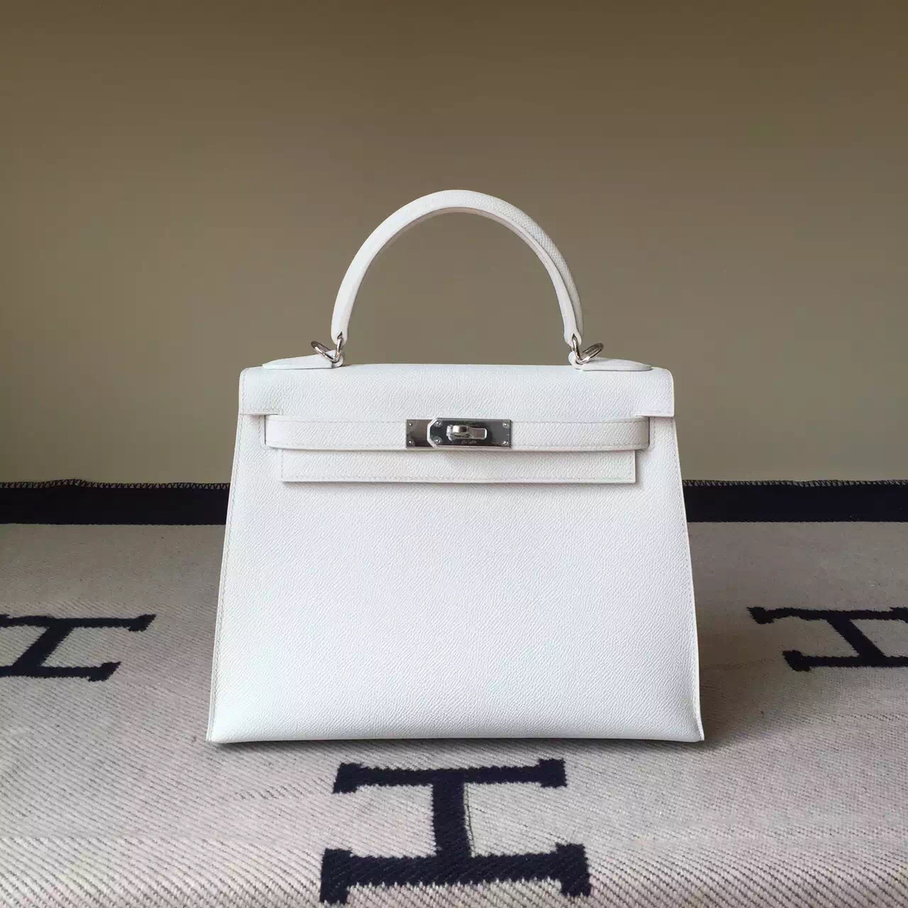 Brand: Hermes; Style: Sellier Kelly Bag28CM ; Material: Epsom Calfskin Leather; Color: 01 Pure White; Hardware: gold/silver; Accessories: Padlock and keys, dust bag.Functions: tote bag,shoulder bag.