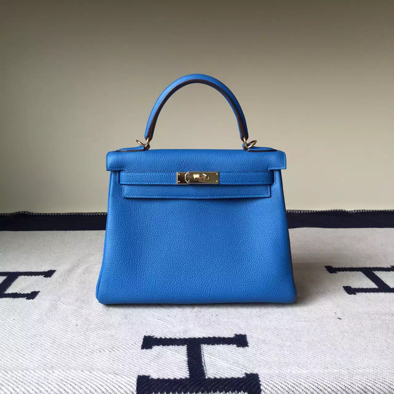 Online Shopping Hermes Togo Leather Kelly 28cm Bag in 7Q Mykono Blue