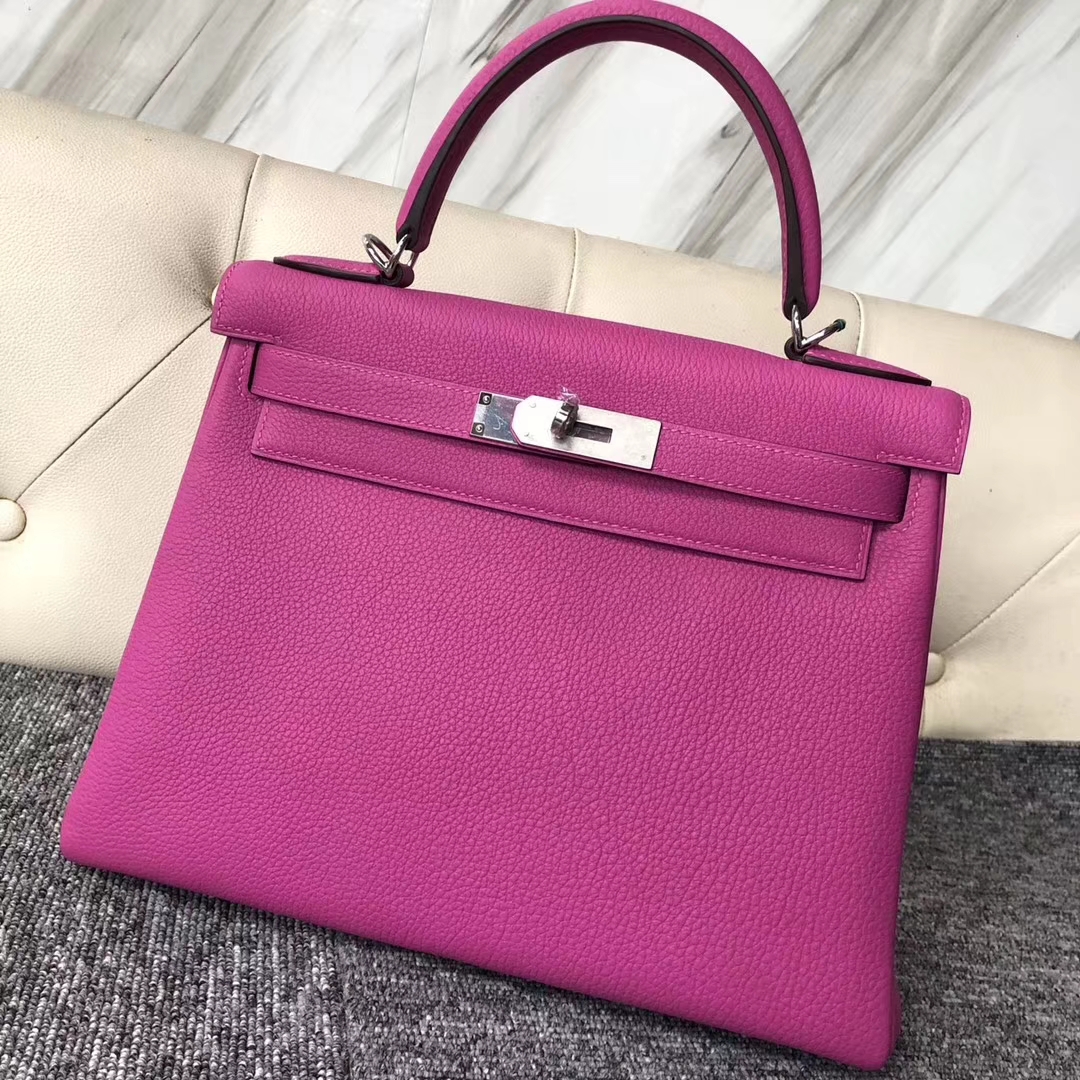 Brand: Hermes; Style: Retourne Kelly Bag; Material:Togo Calf Leather; Color:9I Rose Magnolia; Size:28cm; Hardware: Silver; Accessories: Padlock and Keys, Dust Bag.Functions: Tote Bag,Shoulder Bag.