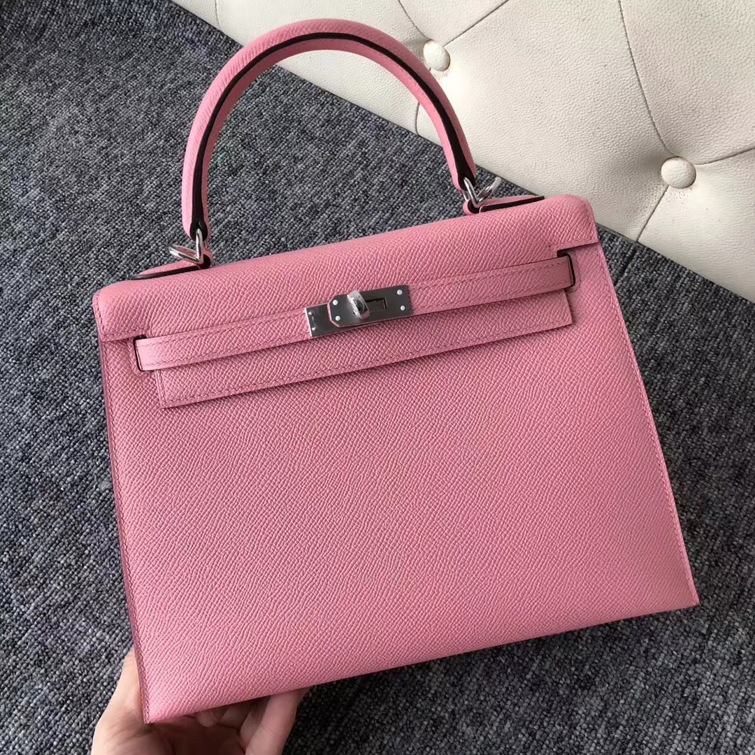 Brand: Hermes; Style: Sellier Kelly Bag; Material: Epsom Calf Leather; Color:1Q Rose Confetti;Size:25cm; Hardware:Silver; Package:Complete Package.Functions: Tote Bag,Shoulder Bag