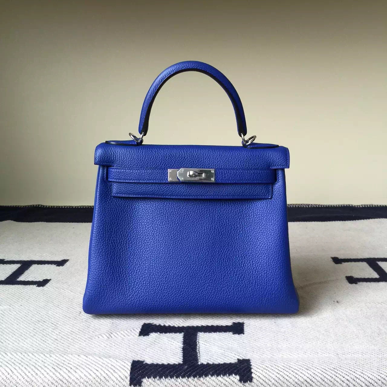 • S7 Blue De Galice Togo Leather Hermes Kelly Bag  28CM Silver Hardware