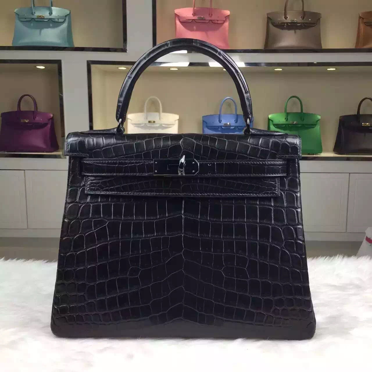 Hermes Black Crocodile Leather Kelly Bag 28CM with Black Buckle