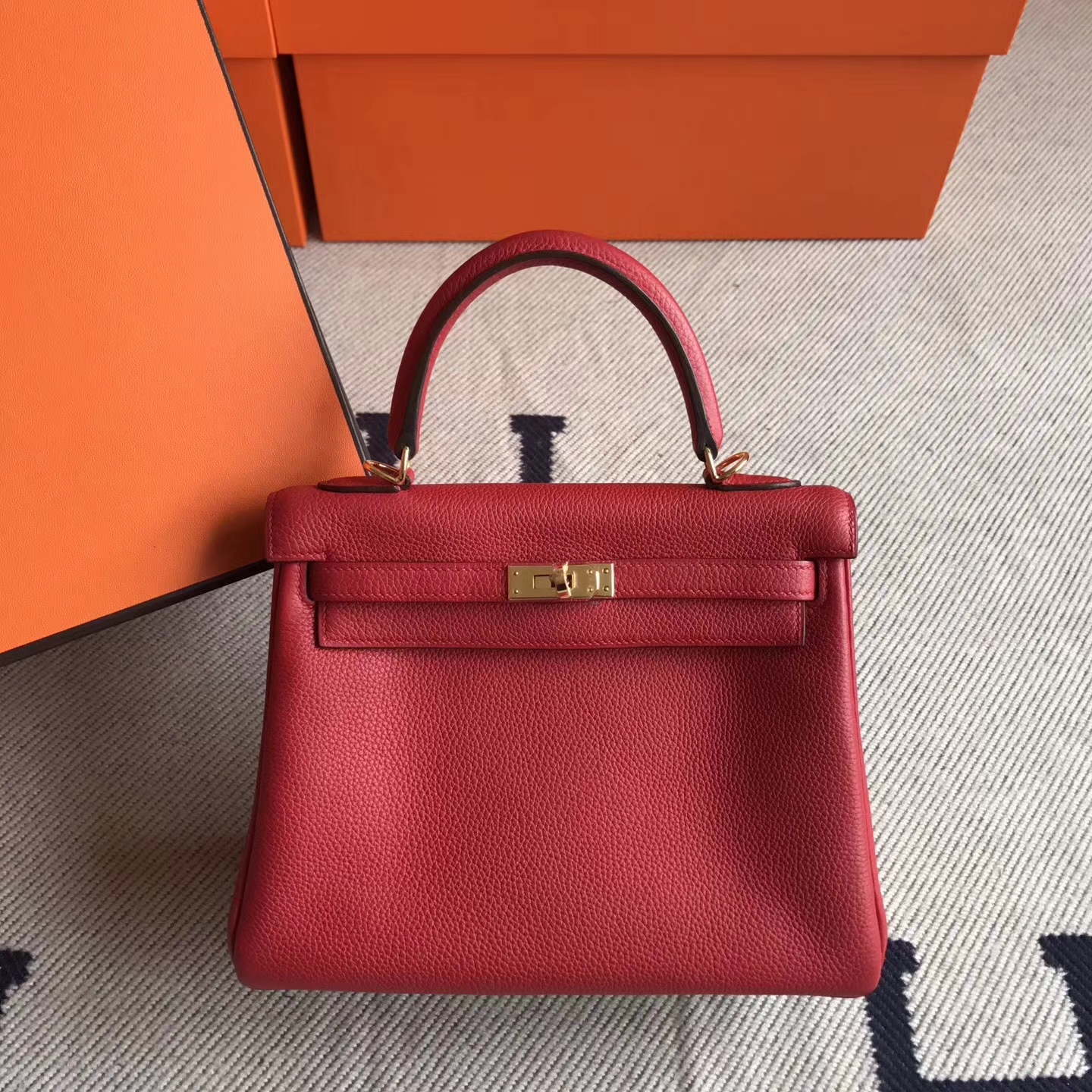 Hermes Togo Calfskin Kelly 25cm Bag in Q5 Rouge Casaque