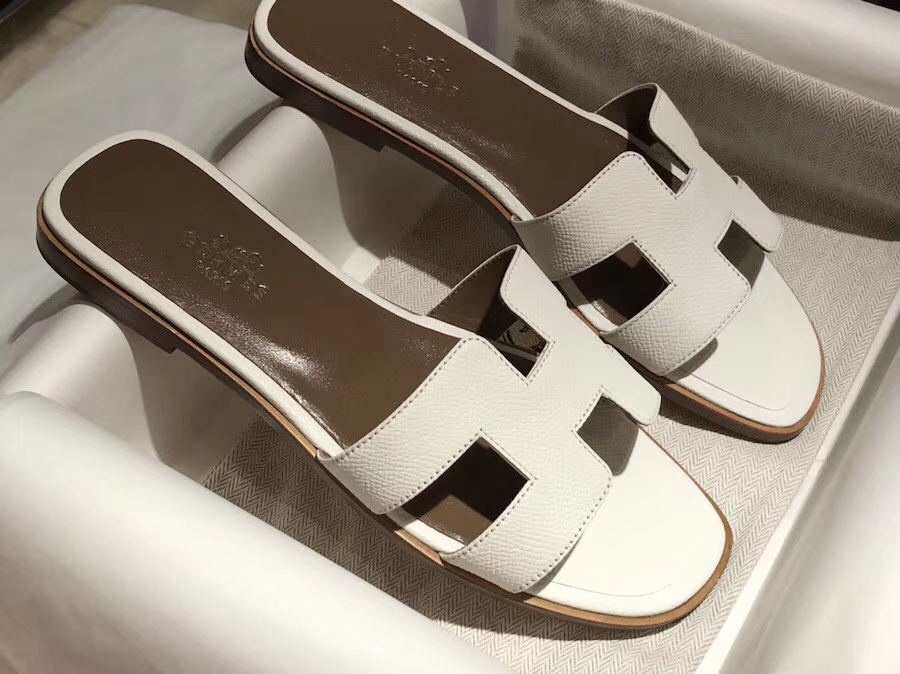 Brand: Hermes; Style: Classic Sandals; Material: Calf Leather;Color: Pure White; Size:35-41(One Size Smaller); Heel:Flat Heel/High Heel:4CM;Accessories: dust bag, shoe box. Function:Hermes Sandals,Hermes Shoes.