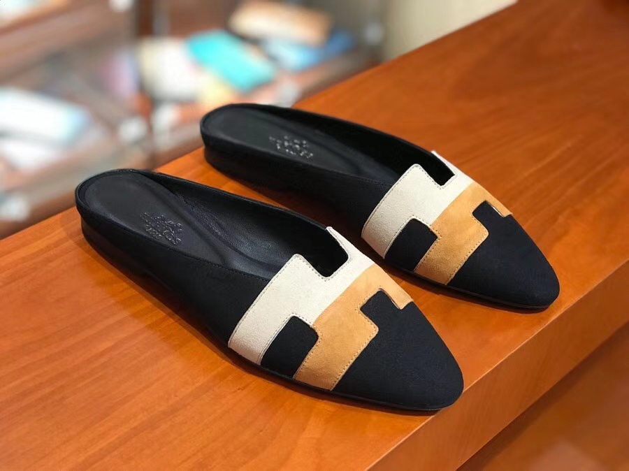 Brand: Hermes; Style: Autumn New Multicolor Sandals; Material: Chamois Leather;Color: Black; Size:36-40(One Size Smaller); Heel:Flat Heel;Accessories: dust bag, shoe box. Function:Hermes Sandals,Hermes Shoes.