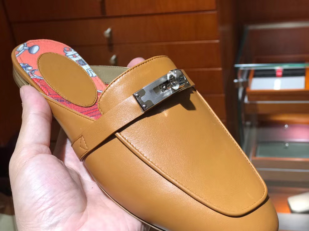 Brand: Hermes; Style: 2018 Autumn Mini Kelly Buckle Kell Style Flat Shoes; Material: Chevre Leather;Color:Gold; Size:35-41; Heel:Flat Heel;Accessories: dust bag, shoe box. Function:Hermes Flat Shoes,Women’s Shoes.