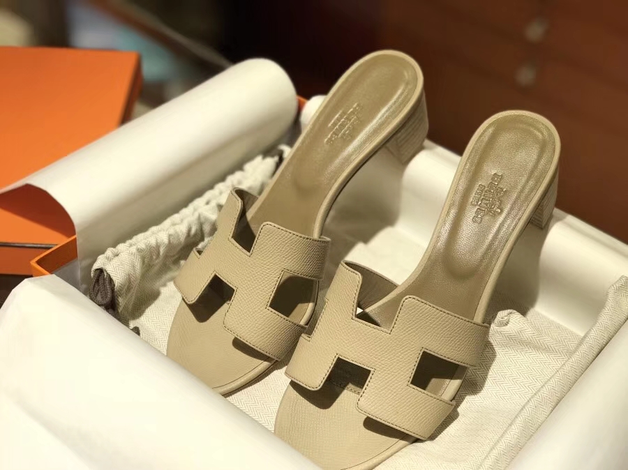 Brand: Hermes; Style: Sandals; Material: Calf Leather;Color: Trench Grey; Size:35-41(One Size Smaller); Heel:Flat Heel/Middle Heel:4CM;Accessories: dust bag, shoe box. Function:Hermes Sandals,Hermes Shoes.