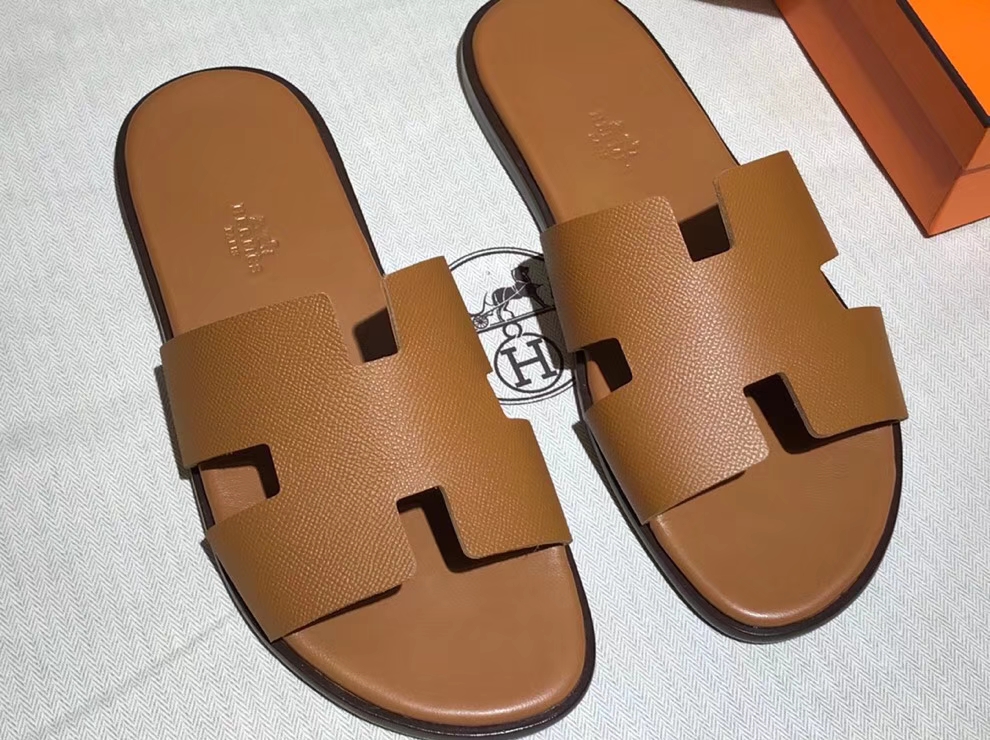 Brand: Hermes; Style: Men’s Classic Sandals; Material: Epsom Calf Leather;Color: Gold; Size:39-44(One Size Smaller) ; Accessories: Dust bag, Shoe box. Function:Hermes Sandals,Hermes Shoes.