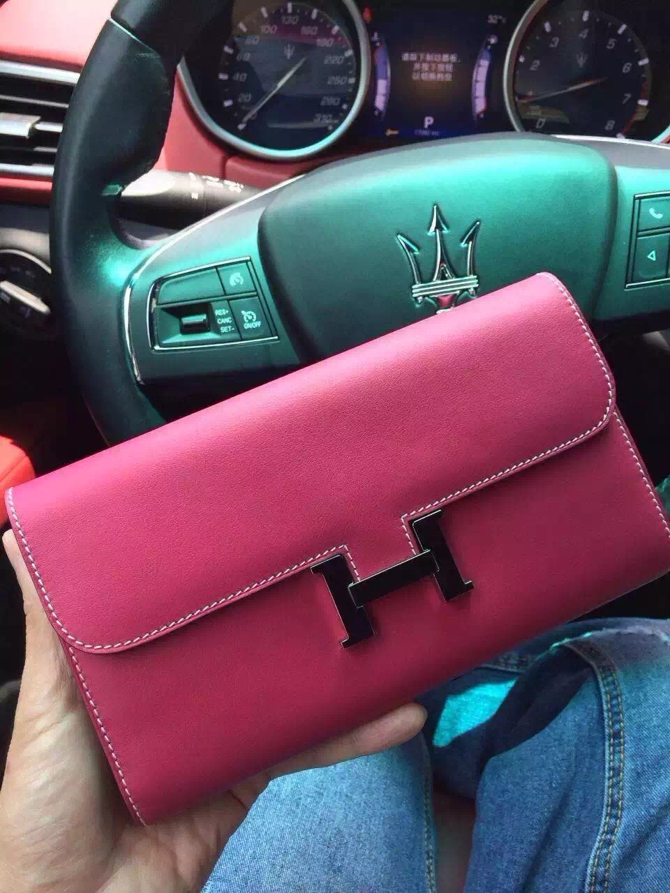 Brand: Hermes; Style: Constance Wallet; Material: Swift Leather;Color:Hot Pink; Hardware: gold/silver; Accessories: Dust Bag, Gift Box; Function:Wallet,Clutch Bag.