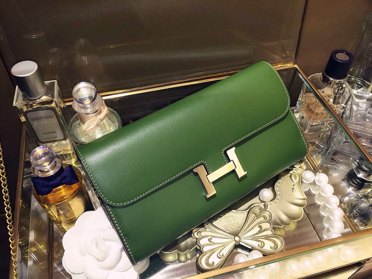 Brand: Hermes; Style:Hermes Silk’in Constance Long Wallet; Material: Swift leatherc;Color:V6 Olive Green; Size:21CM; Accessories: dust bag,gift box.Function:wallet,clutch bag