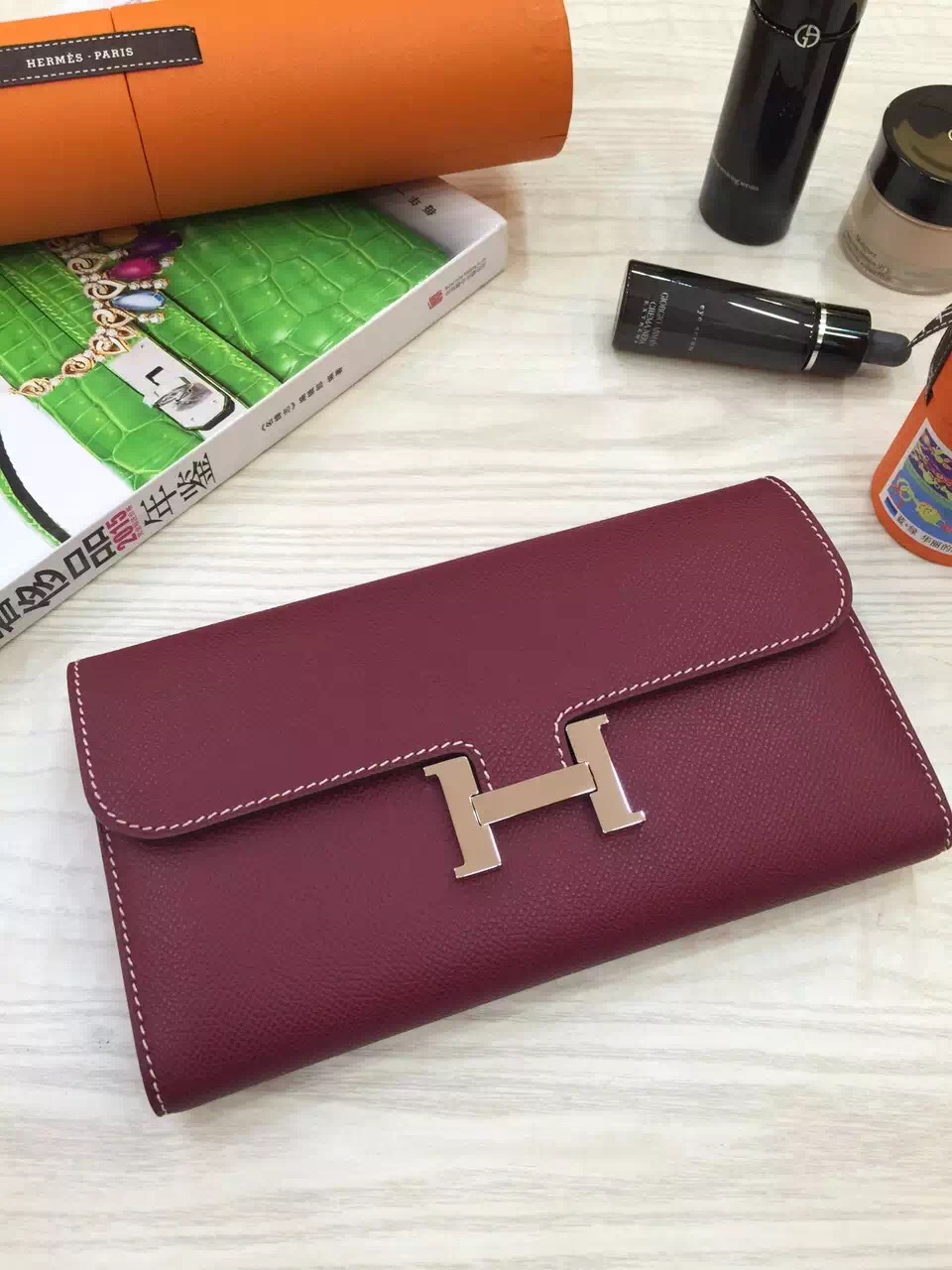 Brand: Hermes; Style: Constance Wallet; Material: Epsom Leather;Color:Burgundy; Size:21CM ; Hardware: gold/silver; Accessories: Dust Bag; Function:Wallet,Clutch Bag.