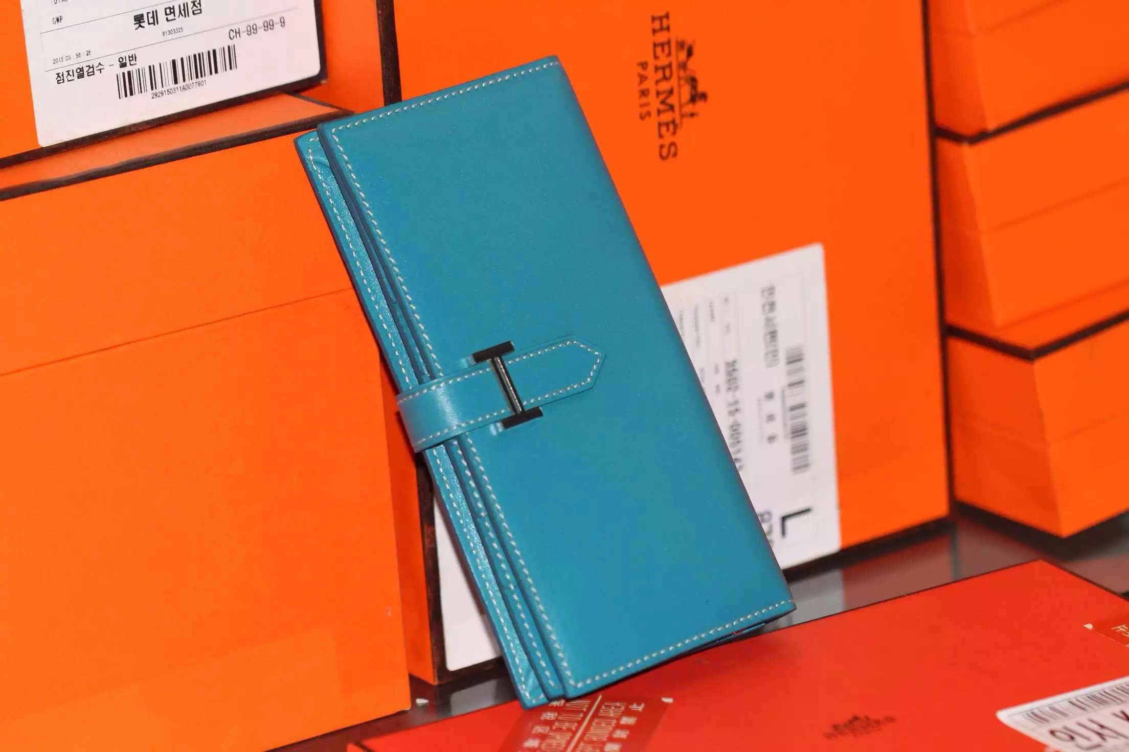 Brand: Hermes; Style:Hermes Bean Wallet; Material: Swift leather;Color:7L Blue De Maite;Size:19CM; Accessories: dust bag,gift box.Function:long wallet,clutch bag