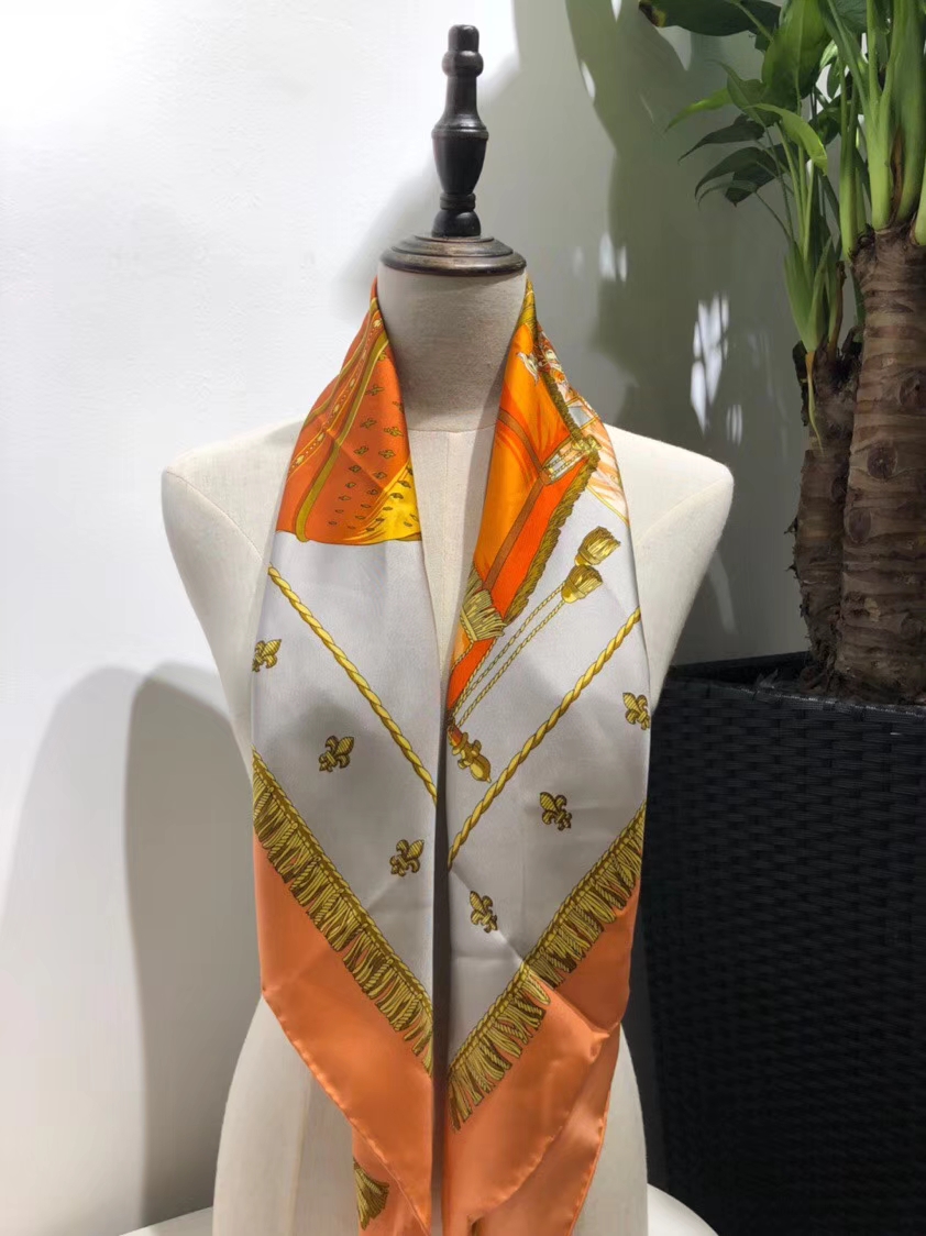 Brand: Hermes; Style:2018 New Silk Scarf; Quality:Top Quality;Material:100%Mulberry Silk;Size:90*90cm;Color:Orange;Package:Complete Package.